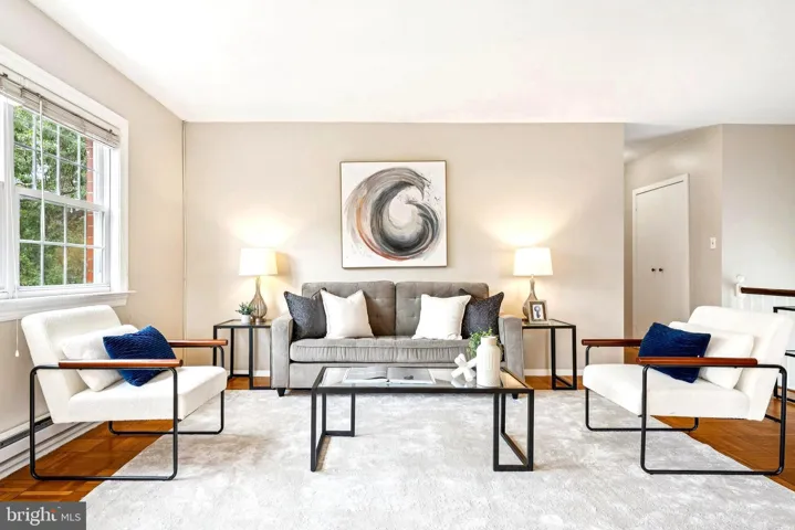Welcome to 3249 Martha Custis Drive, offering the charm of townhouse living with the ease of condo care. This desirable corner unit features its own private entrance and a freshly painted, light-filled interior designed for both comfort and ease. The spacious living room, complete with a brand-new air conditioning unit, flows seamlessly into the dining area, creating an inviting space for entertaining or relaxing. Natural light pours through the windows, highlighting the well-kept parquet floors and serene setting. The updated kitchen, dining nook, and in-unit laundry with extra storage make everyday living simple and convenient
