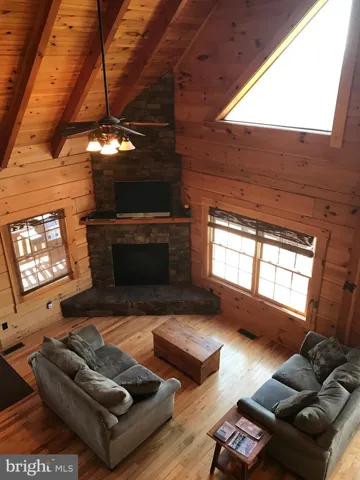 4 custom built log cabins, true log cabins with amazing views, you can see for 30 miles across the valley and to the mountains in the west, beautiful sunsets, close to the Shenandoah National Park, private mountain setting sits on 10.49 acres total tall ceilings with exposed beams, rock fireplace hardwood floors, granite counters and stainless appliances, indoor jacuzzi, outdoor hot tubs, has been a short term rental cabins
