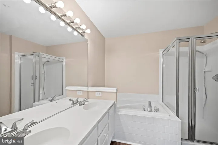 The primary suite provides a private retreat with a large closet and en-suite bath, while the secondary bedroom is generously sized and ideal for guests, a home office, or a roommate setup. A second full bathroom adds flexibility and convenience.