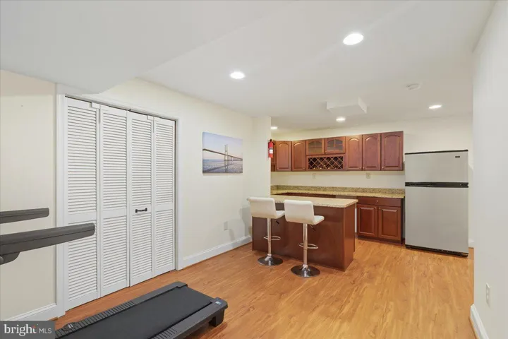 On the Main Level, the eat-in Kitchen adjoining the Great Room offers plentiful, floor-to-ceiling storage cabinets, oversized pantry, modern appliances (including built-in gas range , 2nd wall oven, and range hood) and a central, wet island. Flex spaces for a formal Dining Room flex space and formal Living Room next to grandiose columns add a tasteful elegance. Nearby is a renovated Powder Room and separate Laundry Room with access to the front-loading two car garage complete with epoxy flooring. The Upper Level includes 4 large bedrooms and 3 full bathrooms + a step-up bonus lounge with custom built-ins. The Primary Bedroom offers 2 large walk-in closets with an ensuite full Bathroom featuring separate, modernized vanities, a stand-up shower, and oversized soaking tub. 2 of the secondary bedrooms share a Jack-and-Jill full Bathroom and the remaining Bedroom offers custom, luxury vinyl plank flooring + another full Bathroom ensuite. The Walkout Lower Level includes a 4th full bathroom off a not-to-code 5th Bedroom / Office / Recording Studio, a Home Office / Playroom / Home Gym behind glass French doors, and an open Rec Room / Home Theater / Entertaining Area off the wet bar Kitchenette complete with wine rack and second fridge that conveys.