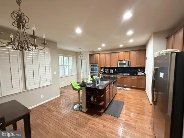 Elegant 3 BR/2.55 BA End Unit TH. 2 Car Garage. Large Trex Deck. HW floors & plant shutters t-out main level. Elegant LR & Sep. DR. Gourmet Kit w/granite, SS appl, cook top, & dbl wall oven. Large MBR suite & Lux MBA. HW floors in MBR, Berber Carpet t-out UL. Great Broadlands location. Walk to restaurants & shops.