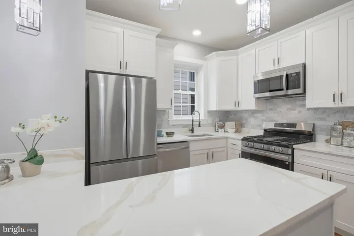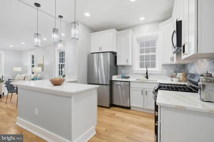 Relax with your morning coffee on the welcoming front porch, the perfect spot to enjoy the neighborhood. Inside, a spacious living room flows seamlessly into the dining area and renovated kitchen—an open layout designed for both everyday living and entertaining. The kitchen is a chef’s delight, featuring crisp white cabinetry, stainless steel appliances, and generous quartz countertops with plenty of prep space.