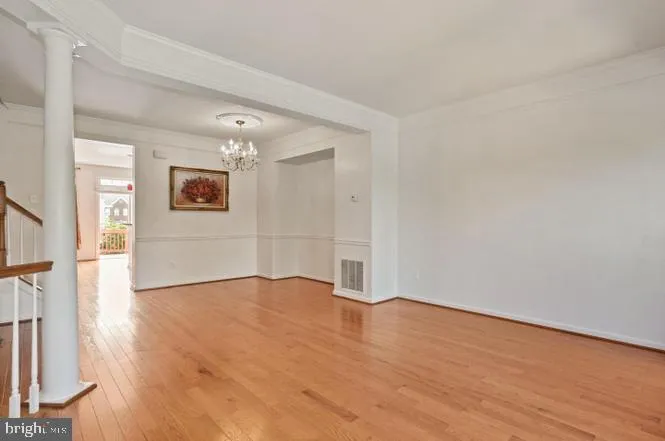 The main level opens with an inviting foyer leading into formal living and dining spaces accented by hardwood floors—ideal for both entertaining and quiet evenings at home. A large family room connects seamlessly to the gourmet kitchen, which is outfitted with granite countertops, a gas cooktop, wall oven, built-in microwave, generous cabinetry, and a center island for both prep and gathering. The breakfast area extends onto a private deck, offering a perfect setting for outdoor dining or end-of-day relaxation.