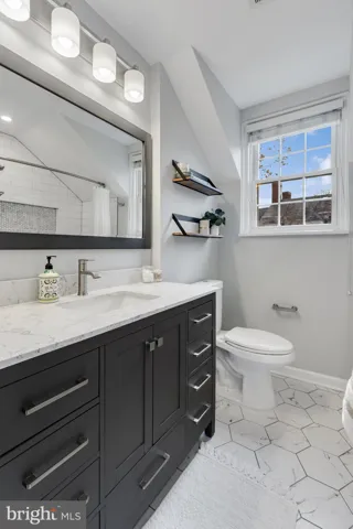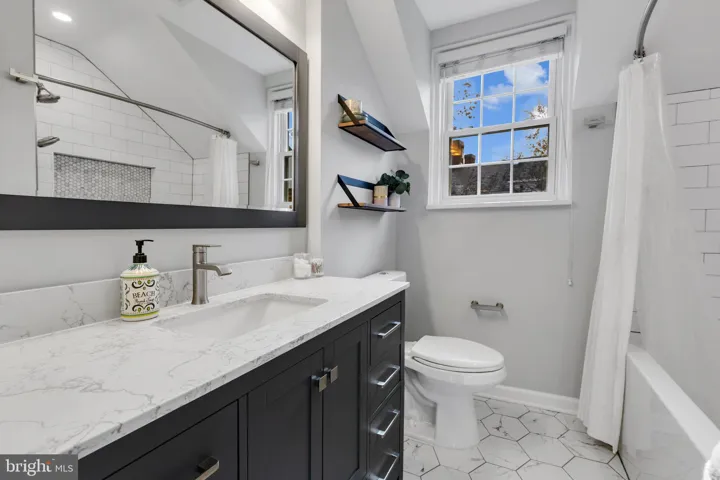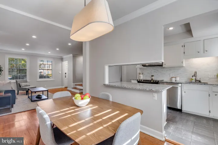 Gorgeous 2-bedroom, 2-bathroom Clarendon I model townhome nestled in Fairlington Arbor. The light-filled main level features gleaming hardwood flooring, crown molding, custom wood shutters, & neutral paint throughout the living room with recessed lighting & separate dining area with modern fabric shade chandelier. The partially open kitchen is accented with granite countertops, tile backsplash, recessed lighting, tile flooring, stainless steel appliances including a new Fisher & Paykel refrigerator (2024), & a new disposal (2025). The back door leads to the private & serene brick patio with elevated gardening beds – the perfect spot to relax or entertain! The upper level features a spacious primary bedroom with a custom closet & a ceiling fan with overhead lighting. A second bedroom with recessed lighting & a ceiling fan, and a renovated bathroom with oversized stone-topped vanity, hexagon tile flooring, & a subway tile shower with niche shelving completes this level.