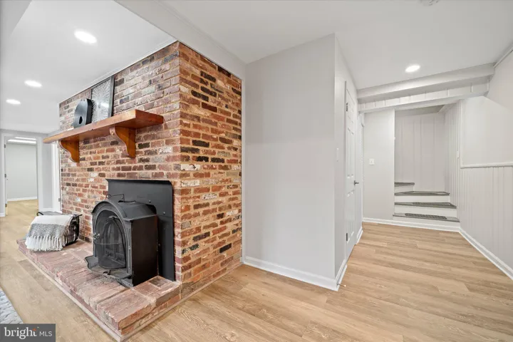 The lower level offers exceptional additional space with new LVT flooring, including a warm and inviting family room with a second brick wall and wood stove fireplace. A large fourth bedroom with a remodeled bath featuring a walk-in shower presents an excellent alternative primary suite. Additional spaces include a laundry room and ample storage.