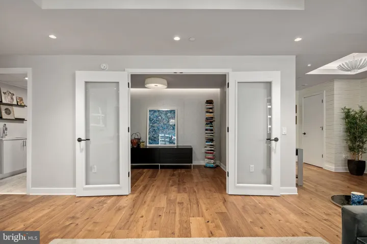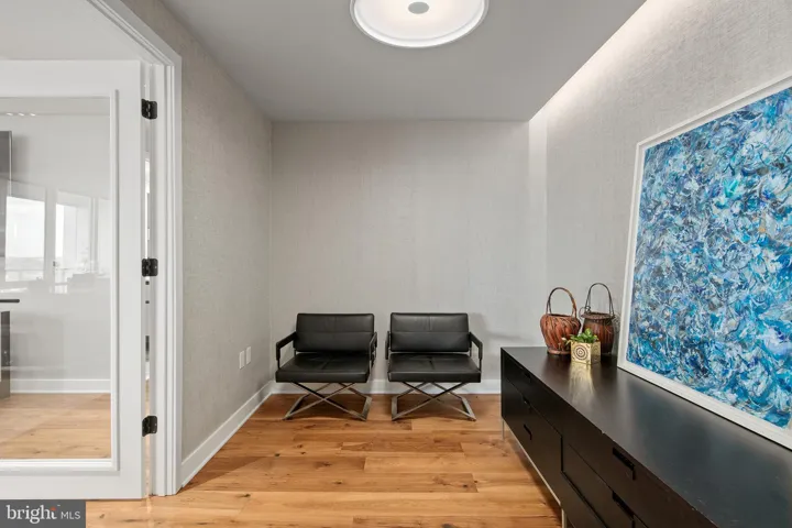 WHAT MAKES THIS UNIT STAND OUT? A private elevator opens to beautifully appointed rooms, wrapped in floor-to-ceiling windows, enhanced with high ceilings and exceptional finishes. Luxurious features include hand-scraped hickory floors throughout, Thermador appliances, Snaidero Italian cabinets, marble tile, heated bathroom floors, and high-efficiency heating and cooling systems. A separate laundry and storage room, private EV car charging at your adjacent parking spots (N224, N225 on P2), and a convenient private storage unit bring the comforts of a single-family home to condo living. The current owner has enhanced the spacious den with glass french doors to add natural light and improve function.