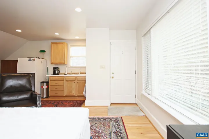 *A 6-month lease commitment is required* This cozy, furnished studio apartment is available for a mid-term lease and provides easy access to major roadways like Hydraulic Rd, the 250 bypass, and Rt. 29. Located near Whole Foods, the Shops at Stonefield, and Barracks Road, you’ll have plenty of shopping and dining options within reach. Downtown Charlottesville, the UVA Medical Center, and UVA’s graduate schools are less than 4 miles away. Nestled within a private residence in the Greenbrier neighborhood, this studio offers a peaceful setting amidst mature landscaping and towering hardwood trees. Explore nearby walking and biking trails along Meadow Creek at Greenbrier Park. This 504 sqft studio apartment offers comfortable living with a private entrance accessed via a flight of steps above a garage. Features include: hardwood floors, an ac/heat mini split system, a combined living/sleeping area with a full-size bed and TV, a kitchen area with a refrigerator, coffee maker, convection oven, two-burner stovetop, and a table with chairs, plus a dedicated desk area for work or study. The bathroom offers a standing shower and is located off of the kitchen. Linens and cookware/utensils are included. No students or pets allowed.