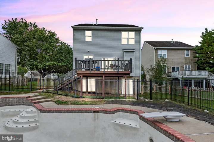 This inviting home nestled in a cul-de-sac features a fenced-in backyard with an in-ground pool, surrounded by upgraded metal fencing. Enjoy a spacious deck overlooking the pool, perfect for relaxing or entertaining. Inside, find ceramic tile in the kitchen and bathrooms, a cozy fireplace, and a gas range stove. The partially finished basement with a walkout adds extra space. Nine-foot ceilings on the main floor and in the bedrooms. This home features a paved driveway with ample parking. Located minutes from I-95 for easy commuting, shopping, and schools, it’s ideal for easy living.