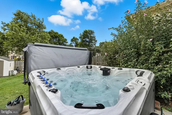 Outdoor living shines here with French doors opening to a new screened three-season porch, a spacious deck, two brick patios with solar lighting, and a private flagstone patio featuring a spa hot tub with seating for seven. The expanded driveway, fenced yard, and mature landscaping complete the property’s curb appeal.