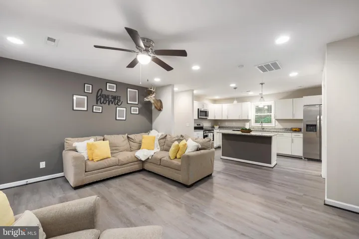 Inside, you’ll love the bright, open floor plan featuring a Brand-new kitchen w/lovely Granite countertops, sleek Stainless steel appliances, crisp white cabinetry, recessed lighting & a spacious island w/seating for four—ideal for casual family meals.