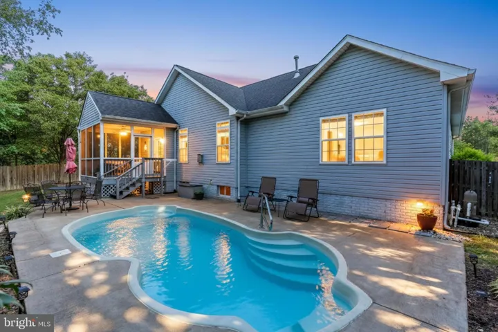Spacious 2 story home with an in-ground pool and low maintenance yard on the East side of Winchester! A 4 bedroom home with 2.5 baths all on the main level. Large family room with lots of natural light and a gas fireplace. Separate dining room for entertaining. You will love the layout of this home home Updated kitchen with granite counters, tile backsplash. and stainless steel updated appliances. Primary suite with 2 big walk in closets. Spa bath has large soaking tub, separate shower, water closet, and long double vanity. Laundry mud room with wash sink and storage cupboards off the 2 car attached garage. Amazing screened in porch with porch swing all overlooking the fiberglass in-ground pool. Full privacy fence in back yard. The home also offers a large workshop and full finished bath in the huge basement, with plenty more unfinished space for storage, or to finish and grow into! Walk up steps to back yard form double slider door in lower level.. All of this in an unbeatable location just off of route 7. This home has been very well maintained and is move in ready. Roof replaced approx 2019. Alarm system with Vector security. Neutral paint throughout. Ceiling fans in all bedrooms.