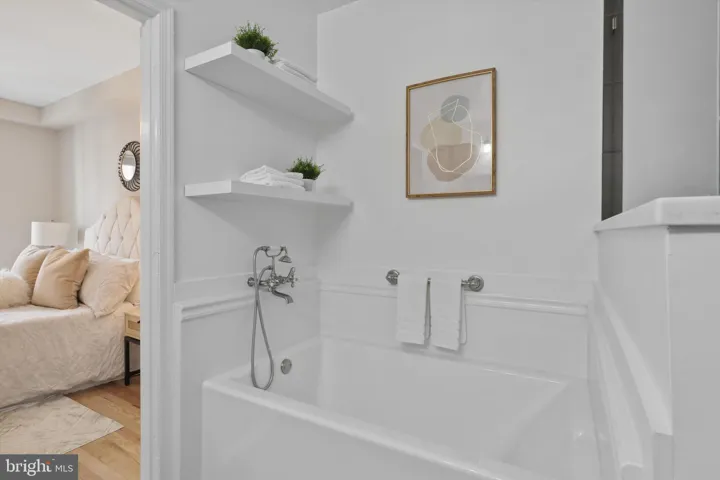 The primary suite is a retreat with thoughtfully designed closets and a completely reimagined spa bathroom, featuring a soaking tub, double vanity, and a large shower with stunning slate tile. Downstairs, a generously sized second bedroom with adjacent full bathroom is ideal for guests. Additional storage and a laundry area round out this level and add to the convenience of living here.