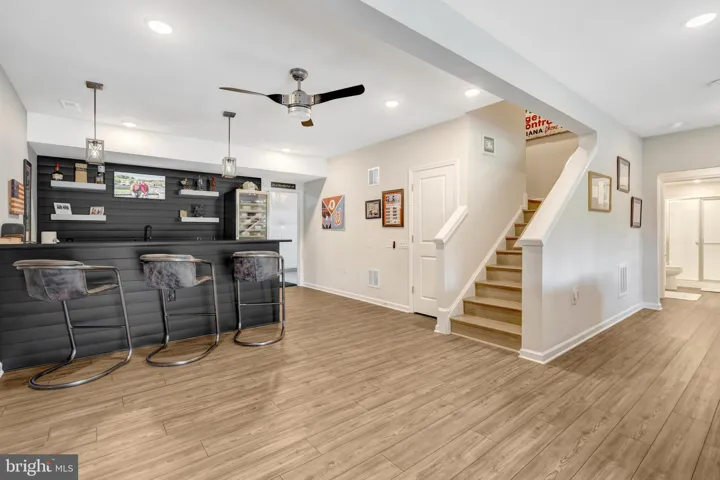 Upstairs, a private guest loft retreat offers a bedroom, full bath, living area, and dedicated storage. The fully finished basement is an entertainer’s hub with a custom bar, quartz counters, a full-size dishwasher, an additional bedroom and bath, a spacious media/office area, and abundant storage. Outside, enjoy an extended rear deck with a built-in gas fireplace for crisp evenings under the stars, plus a covered front porch with a ceiling fan for quiet nightcaps and neighborly waves.