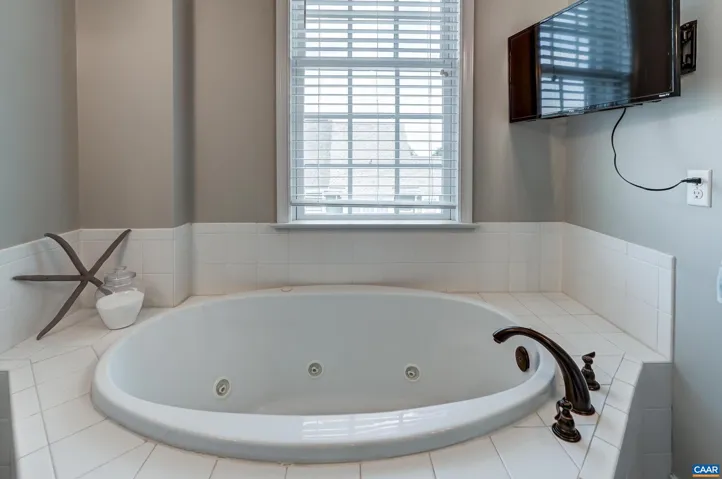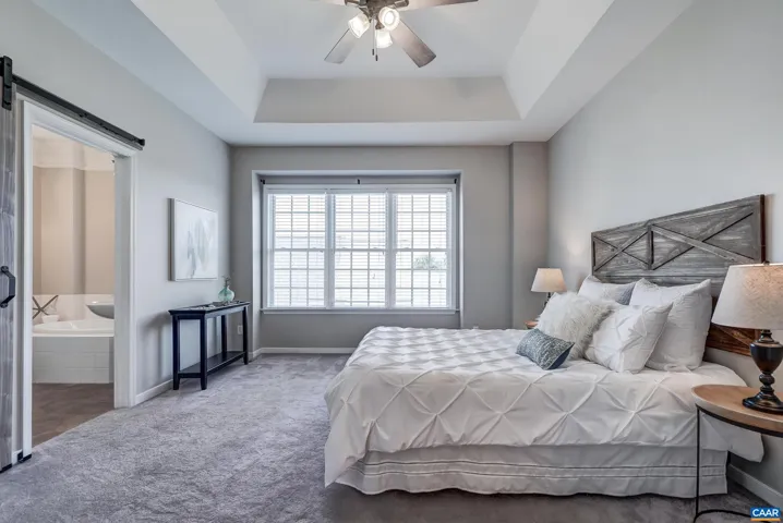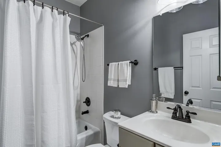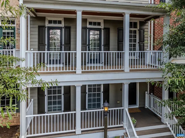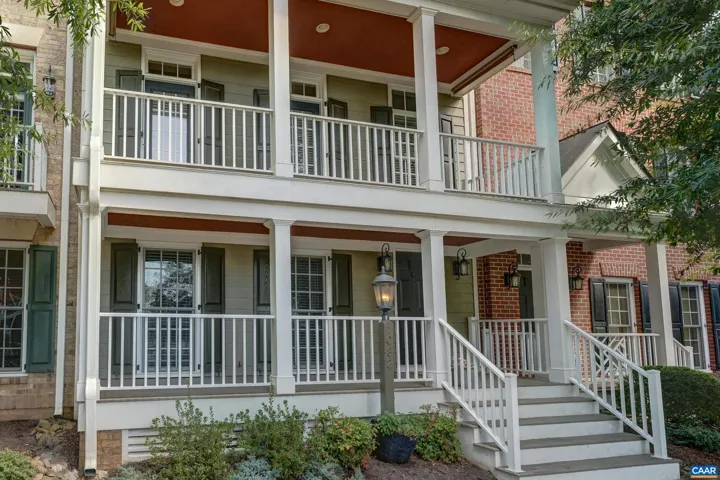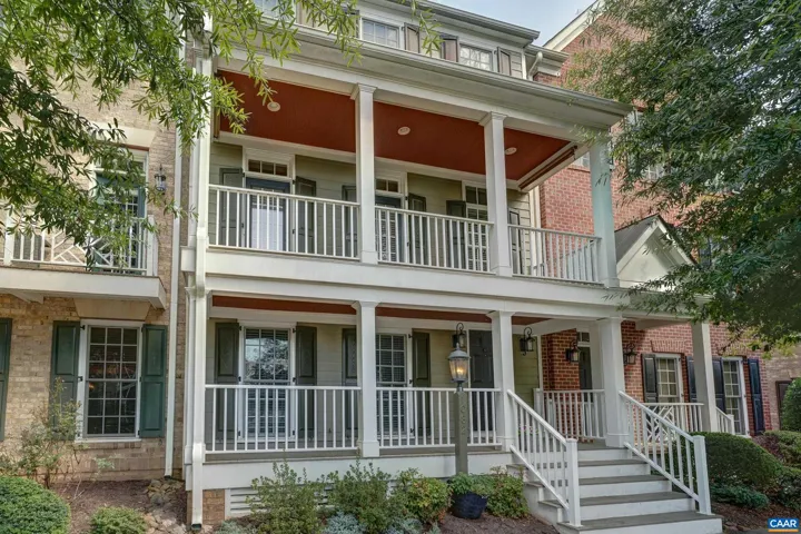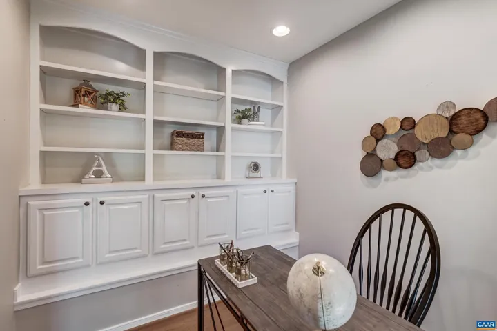 Don’t miss this stunning townhome with three large bedrooms, each with ensuite bathroom, with neutral paints throughout. Two covered front porches with mountain views. You’ll love the beautiful hardwood floors in foyer, and throughout the open main level. Gather in the great room featuring electric fireplace with tile surround flanked by built-in shelves. Modern kitchen features white cabinets, granite counters, island workstation with cooktop and extended seating, coffered ceiling and stainless appliances. Formal dining room features sparkling, modern chandelier and opens to front covered porch. Work from home in the office with built-ins and pocket doors. Upstairs, relax in the owners suite with private bathroom with soaking tub and separate shower. Second large bedroom also features private bath. Bedroom 3- also with private bathroom located on the ground level is perfect for guests! Large garage and attic with flooring and lighting added for easy storage too!,Granite Counter,White Cabinets,Fireplace in Great Room