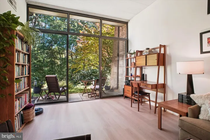 Welcome to 11564 Rolling Green Court, Unit #100. Reston is THE place to be! This bright and spacious condo is the home to have! This delightful, light-filled home boasts 2 bedrooms, and 2 full baths with floor-to-ceiling windows backing to woods with a private patio to relax with a cup of coffee in the morning or to entertain your friends and family in the evening. It’s just minutes from Reston Town Center, the Silver Line Metro and Dulles Airport. The elegantly remodeled kitchen has quartz counters, a quartz backsplash, 42″ wood cabinets with undercabinet lighting, expansive counter workspace, and spacious pantry for added storage. It’s a culinary delight! The hall bath has been remodeled with custom finishes and fixtures that feel timeless. Plus, the primary bath has been updated with custom light fixtures and wood vanity. The open floor plan is designed for comfort and ease of entertaining accented by the luxury vinyl plank flooring and soaring 10ft ceilings. There is a washer/dryer in the home and the home offers an assigned parking spot w/lots of visitor parking. Enjoy all that Reston offers to include pools, walk/bike paths, tennis courts, lake privileges and much more!