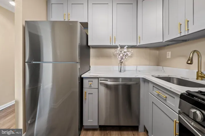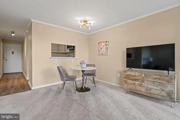Sun-filled 568 sq ft studio at The Carlton with ALL Utilities Included in condo fee! Renovated kitchen (2023) with quartz counters, Samsung stainless steel appliances, modern lighting, and new blinds. Bathroom with new vanity & updated finishes. Popcorn ceilings removed (2022) for a sleek look. Bright living space with crown molding & floor-to-ceiling windows. Smart thermostat (2025). Two parking spaces plus storage available. Resort-style amenities: 24-hr concierge, package room, pool, gym, sauna, tennis, and more. Close to Shirlington, W&OD trails, parks, shops, and easy Metro access.