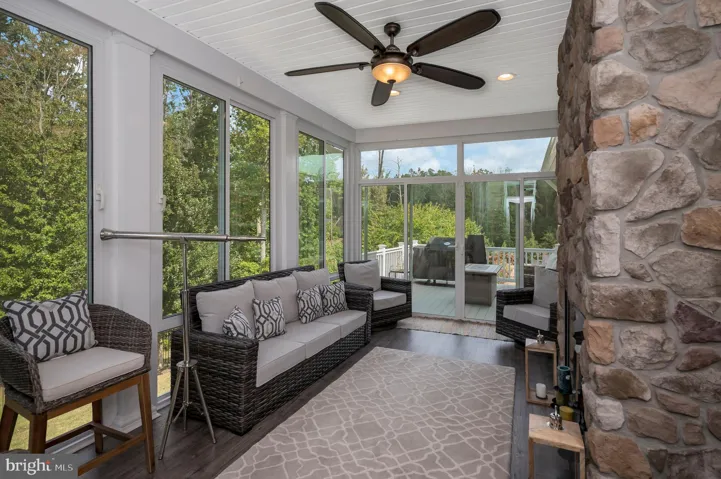 Immaculate 5-Bedroom Estate on 3 Acres with 50 Feet of Waterfront This stunning brick-front home offers 5 bedrooms, 5.5 bathrooms, a 2-car garage, and an impressive 5,699 square feet of living space on 3 acres with 50 feet of private waterfront. Designed for both luxury and functionality, this property combines serene outdoor living with high-end interior finishes and built-in surround sound throughout the home in one of Stafford County’s most desirable locations. Estate living has never been better in this exquisite brick-front home on a beautifully landscaped corner lot with an inviting front porch. Extensive landscaping and an installed irrigation system make outdoor upkeep effortless. Perfect for entertaining, the property features a sparkling in-ground pool, a screened four-season porch, a paver patio, fenced yard, large storage shed, and serene water views. Inside, a grand open floor plan is enhanced by double crown molding, an upgraded trim package, and hardwood floors throughout the main level. The family room boasts coffered ceilings, a custom accent wall with cabinetry and open shelving, and a double-sided fireplace shared with the spacious kitchen. The chef’s kitchen offers a double oven, stainless steel 6 burner gas cooktop. Large island with seating for four, upgraded pendant lighting, granite countertops, abundant cabinetry, a custom backsplash. Breakfast area large enough to table a large family, more cabinets with accent glass front door, second prep sink and beverage fridge. Additional highlights include a custom command center with access to a Baker’s pantry featuring cabinets, open shelving, and butcher block counters, plus a Butler’s pantry leading to the formal dining room. Drop zone complete with closet, built in bench and custom cabinetry. A main-level bedroom with full bath, a private office with glass doors and half bath complete the first floor. From the kitchen, step into the four-season sunroom with floor-to-ceiling windows, LVP flooring, and stunning lake views. A maintenance-free deck overlooks the in-ground pool and landscaped grounds. Hardwood stairs with iron balusters lead to the upper level with 10-foot ceilings, plush upgraded carpet, and a spacious laundry room with cabinetry, folding area, and sink. Two junior suites each offer walk-in closets and private baths with granite counters. Double doors open to the luxurious primary retreat featuring a sitting room with fireplace, custom built-ins, dual walk-in closets, and a spa-inspired bath with dual vanities, oversized walk-in shower with dual heads and bench, and a soaking tub framed by a picture window. The lower level continues the home’s entertaining potential with a built-in bar featuring granite counters, dishwasher, beverage fridge, and sink. There’s ample room for a theater, pool table, ping-pong, or other recreation, all enhanced by the home’s integrated surround sound system. A large legal bedroom with full bath and a bonus hobby room—perfect for fitness or crafts—complete this level. With 10-foot ceilings on the main level and 9-foot ceilings on the lower level, this home offers exceptional space and upgrades throughout. Conveniently located near I-95 for an easy commute to Quantico or DC, within Stafford County’s highly rated school district and close to shopping, this property truly leaves nothing to be desired.