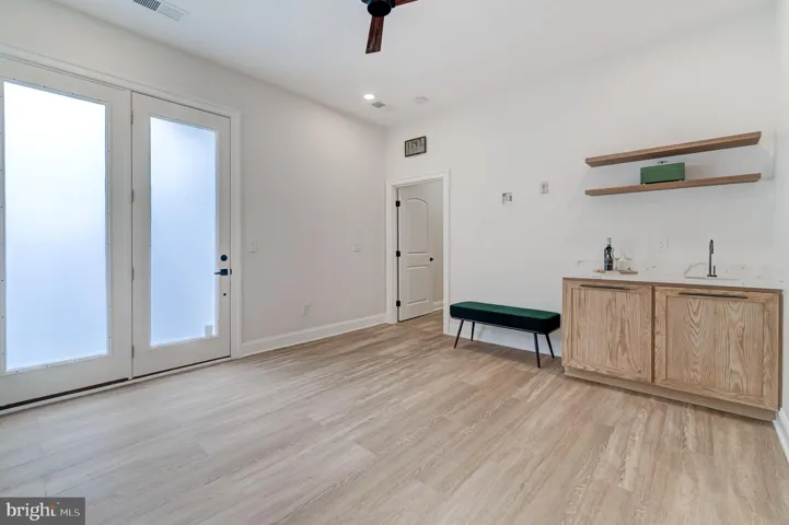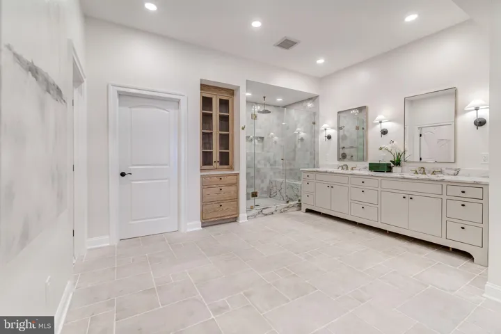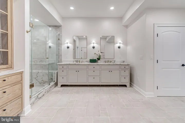 The finished lower level expands the home’s living space with luxury vinyl plank flooring, custom design accents, and a full wellness suite complete with a gym, spa bath, and steam shower—creating a private retreat within the home.
