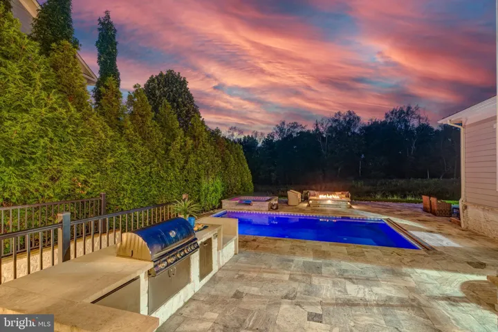 The backyard is an entertainer’s paradise, complete with a heated pool and spa, travertine pool deck and patio, and a built-in outdoor kitchen—creating the perfect setting for effortless gatherings and resort-style living.