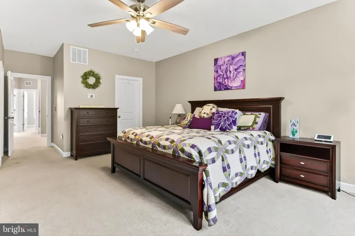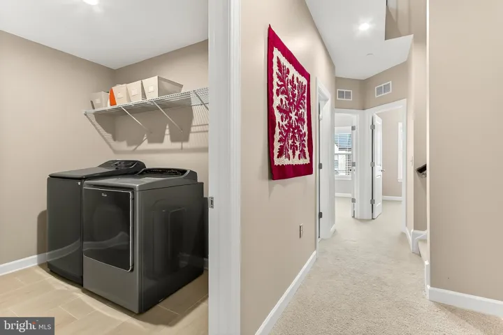Upstairs, the spacious primary suite serves as a true retreat, featuring dual walk-in closets and a spa-inspired bath with a seamless glass shower, Winstead Birch cabinets, and a Stellar Gray Quartz vanity. For added convenience, the laundry room is located just outside the primary suite.
