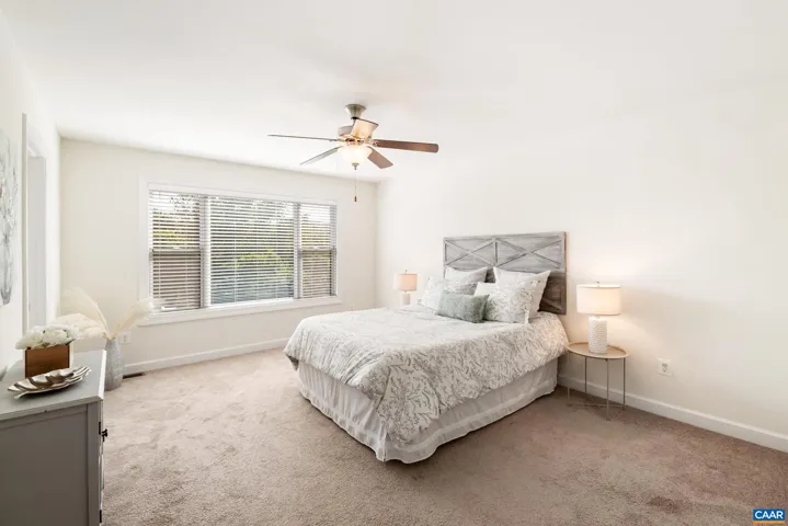 Marvelous Belmont townhome freshly painted and move-in ready! Easy care, efficient living close to all things Charlottesville. This popular “Bainbridge” model is open, spacious and flooded with light! Abundant upgrades including an upscale kitchen with granite, huge island with breakfast bar, handsome cabinetry, stainless steel appliances and large DR picture window. Find hardwoods on main living level and in all traffic areas! Step out glass doors to a deck with composite decking and backed by trees. The Owner’s Suite is a cozy retreat with ceiling fan, large walk-in-closet and large bath with double vanities. Convenient BR-level laundry! But wait there’s more! The terrace bedroom offers private quarters with huge closet, full bath and double doors to back yard. So much storage with 2 foyer closets, both brightly lit and one with shelving, as well as a 125sf utility room. All this, and walking distance to nearby restaurants (Beer Run!) as well as the downtown pedestrian mall and summer concerts. Move in, enjoy Cville and start living! Hard to find all this under $550K!,Granite Counter