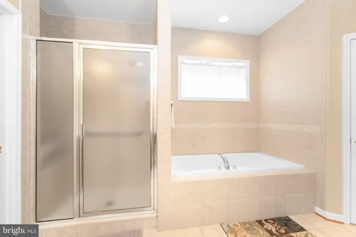 The home’s split bedroom design enhances privacy. True retreat is found in a spacious primary suite appointed with vaulted ceilings, bay window, two walk-in closets, and a luxurious ensuite bath featuring a jetted soaking tub, separate shower, dual sinks, and a dedicated makeup vanity. Two additional bedrooms on the main level share a well-appointed full bathroom—perfect for family, guests, or a home office setup.