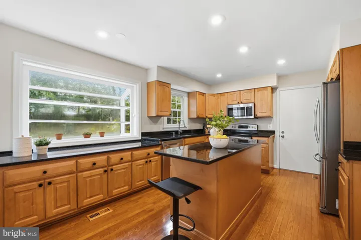 The updated kitchen features granite countertops, upgraded cabinetry, updated stainless steel appliances including a versatile double oven, and a sunny garden window that your herbs and plants will love. Sliding doors open to a wood deck that leads to a paved patio and landscaped courtyard-style backyard highlighted by an in-ground wired Casa Marseille 3-light lamp post and a set of outdoor furniture — both of which will convey. In-ground outlets make holiday or festive lighting effortless-no more messy cords! Perfect for entertaining, relaxing under the stars, or children’s play.