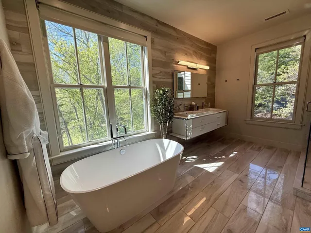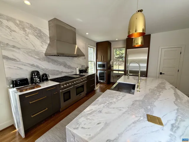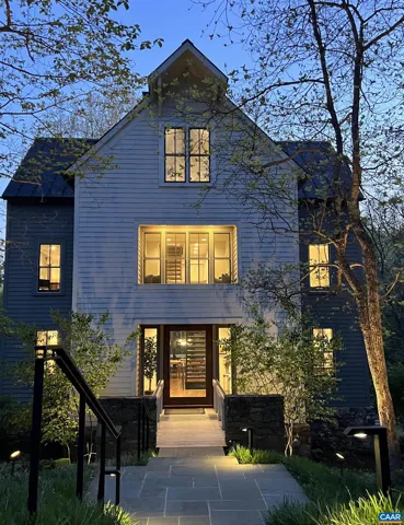 A breathtaking architectural masterpiece in Inglecress, offering nearly 5 acres of luxury, privacy, & natural beauty. Perfectly sited at the end of a peaceful cul-de-sac. Spectacular 4,432SF custom home showcases 4 bedrooms, 3 full and 2 half baths, & a dramatic modern design, fully reimagined by Alexander-Nicholson w/ the finest craftsmanship & materials. Step through a stunning mahogany pivot door into sun-drenched living spaces with soaring ceilings, sleek steel-and-oak staircases, and walls of glass framing endless pastoral and wooded views. The designer chef?s kitchen dazzles w/ Thermador appliances, marble waterfall counters, & custom cabinetry, flowing seamlessly into expansive living & dining areas w/ multiple fireplaces and a NanaWall opening to the elevated deck. Luxury primary suite is a true sanctuary w/ French doors overlooking Ivy Creek & a spa-worthy bathroom. The top floor offers a vaulted guest retreat, while the ground level features a chic family room, wet bar, and 2-car garage. Private elevator, whole-house generator. Relax on elevated deck, gather around the fire pit near the creek, or roam your own park-like grounds w/ direct trail access and 825ft of waterfront.,Marble Counter,Wood Cabinets,Fireplace in Family Room,Fireplace in Living Room