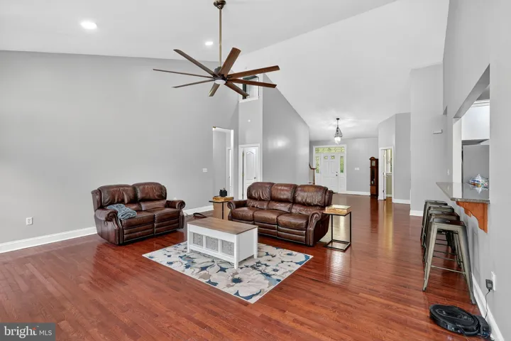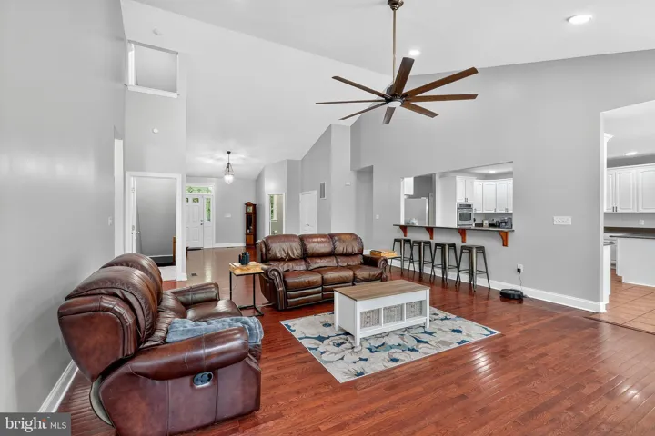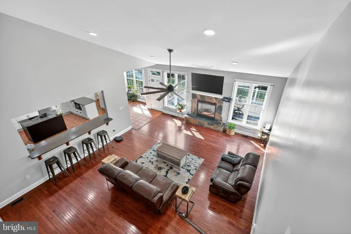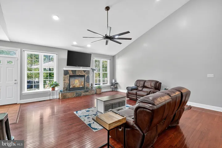 Step inside to discover a bright, open-concept layout featuring a grand family room with soaring ceilings, a striking floor-to-ceiling stone fireplace, and seamless flow into the spacious dining area and gourmet eat-in kitchen. Designed for both everyday living and entertaining, the kitchen is outfitted with stainless steel appliances, abundant cabinetry, a big pantry, and generous counter space, all overlooking the rear deck and backyard oasis.
