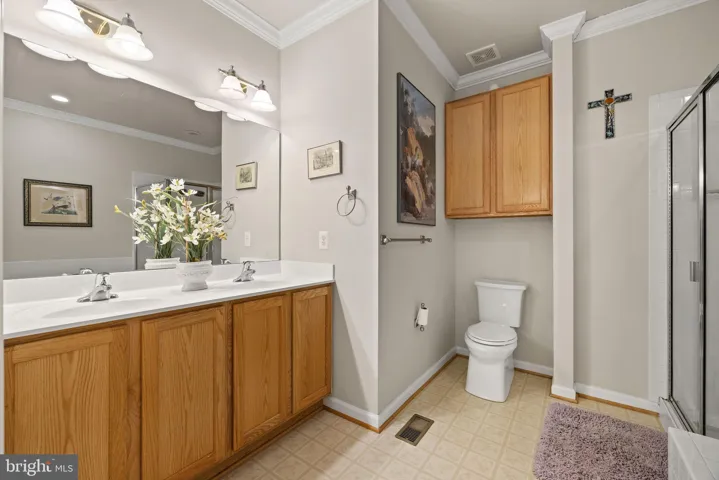 Ever popular Villa transformed into a rich tour of Europe. Come inside and be inspired as the vaulted living room offers sunfilled elegance accented by gas fireplace and dormer windows. Then entering the newly remodeled (2022)Gourmet European style kitchen with Italian flooring, custom faux finished cabinets and walls, custom made copper leaf range hood vented to outside, WOLF range top, new refrigerator, dishwasher and garbage disposal. Features farm sink, double ovens and lighted pantry. Cabinet storage includes pullout shelves and 2 lazy susans Island for additional food prep Quartzite countertops and backsplash to make a seamless finish. Added lighting to top and under cabiinets and floor. The formal dining room has custom plantation shutters and access to the rear screened porch. enjoy mornings or evenings in your private setting bug free and built with maintenance free trex. One level living with the primary bedroom and bath with soaking tub and separate shower, walk-in closet.. Main level also features powder room and laundry room. Upper level boasts of loft area ideal for office, TV room, den, a room with so many uses. There are 2 large bedrooms with walk-in closets and the second full bath. Note crown noldings thru-out. The lower level is unfinished offering numerous expansion possibilities. Great storage , rough-in for future bath and walkout to rear yard. Home is located on a cul-de-sac street in lovely neighborhood . ENJOY your tour!!