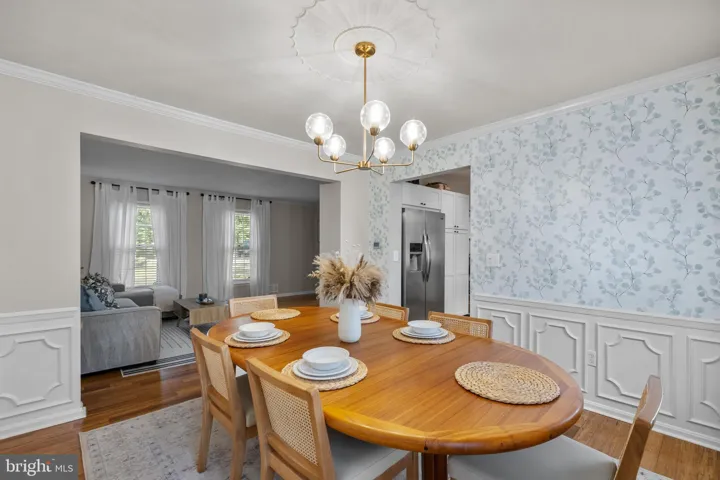 Step through the foyer to discover gleaming hardwood floors throughout all three levels, abundant natural light, and an inviting, functional layout. The main level features two spacious living rooms, a formal dining room, and an open, updated kitchen with quartz countertops, stainless steel appliances, modern cabinetry, and a breakfast area perfect for casual dining. The kitchen flows seamlessly into the family room and leads to a large deck with a charming pergola—ideal for entertaining or relaxing outdoors.