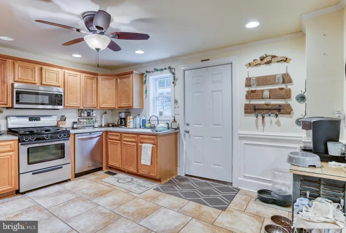 Inside, the home welcomes you with warmth and charm. Hardwood floors run throughout, and wainscoting in the living and dining rooms adds to the farmhouse character. A large, inviting living room with a cozy gas fireplace is perfect for gathering on chilly evenings. The country kitchen is both beautiful and functional, featuring stainless steel appliances, Corian countertops, and a huge pantry—ideal for preparing hearty farm-to-table meals.
