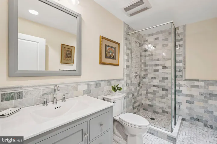 Upstairs, you’ll find two well-appointed bedrooms, including the expansive primary suite with a dream-worthy walk-in closet featuring custom cabinetry and built-in storage, plus a spa-inspired ensuite bath with high-quality tilework. All bathrooms in the home were fully remodeled with enduring style and thoughtful finishes.