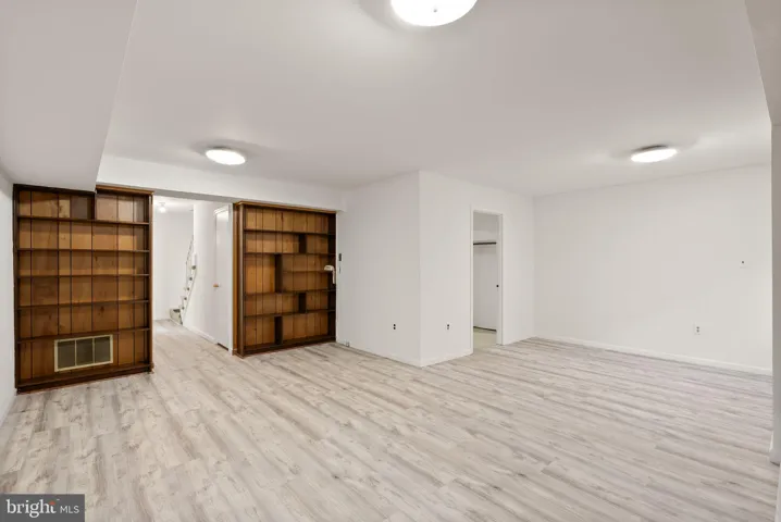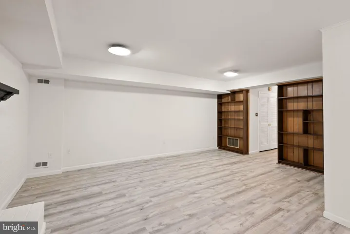 The lower level offers a large family room with tasteful LVP flooring (2019), a newly renovated half bath (2025), and a second fireplace with a huge hearth and wood mantle for added comfort. There is also direct access to the rear patio. An amazing amount of built-in storage makes this lower level both practical and inviting.