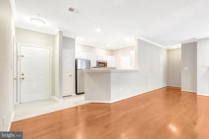 Welcome to luxury living in the heart of Reston! This beautifully renovated 2-bedroom, 2-bathroom condo in Edgewater at Town Center offers the perfect mix of comfort, style, and convenience. With 1,224 sq ft, it features the largest floor plan in the community, a step-free private entrance, and sun-soaked southern exposure throughout the spacious, open-concept layout. Enjoy 9-foot ceilings, hardwood floors, crown molding, and a cozy gas fireplace in the living area. The chef-inspired kitchen includes quartz countertops, stainless steel appliances, gas cooking, a stylish tile backsplash, recessed lighting, and durable porcelain tile floors. A large walk-in pantry/laundry room with a full-size washer and dryer adds everyday convenience. The primary suite includes a huge walk-in closet and a private ensuite bath, while the second bedroom is perfect for guests, an office, or roommates. Relax outside on your private terrace with direct access to a large walk-in storage closet. Community amenities include a fitness center, outdoor pool, pet area, and tranquil pond. Just minutes from Reston hospital, Whole Foods, Trader Joe’s, the W&OD Trail, Metro (1 mile), and all the shops and dining at Reston Town Center. Water, trash, and HVAC maintenance are included. Don’t miss your chance to live in one of Reston’s most sought-after communities!