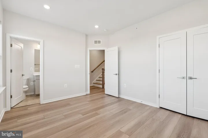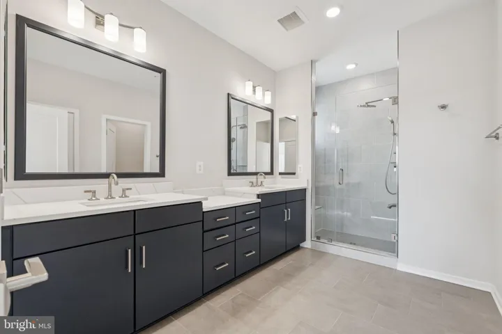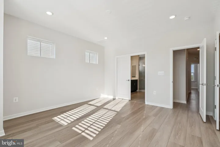 The upper-level primary suite features dual walk-in closets, a box bay window, and a spa-like ensuite bath with a luxury rain shower and frameless glass doors. A versatile loft—ideal for an office, lounge, or fitness space—leads to the rooftop terrace with expansive views. Additional features include an entry-level bedroom with full bath, upper-level laundry and an east-facing premium lot.