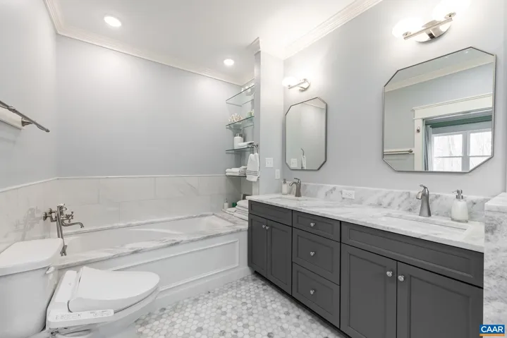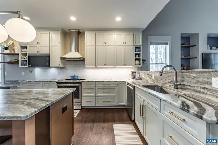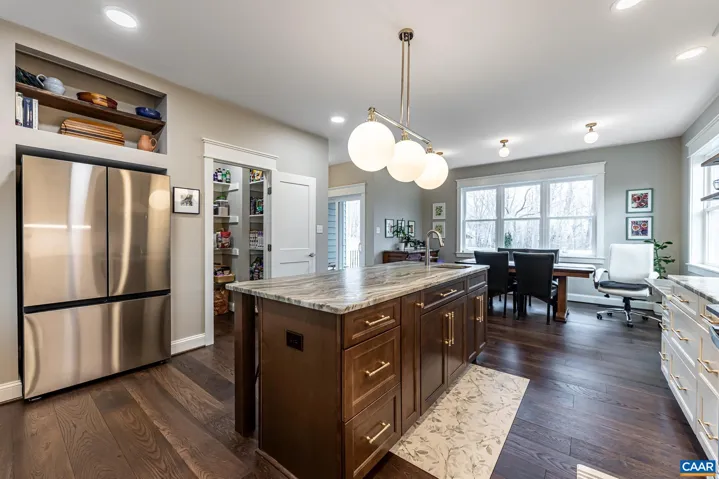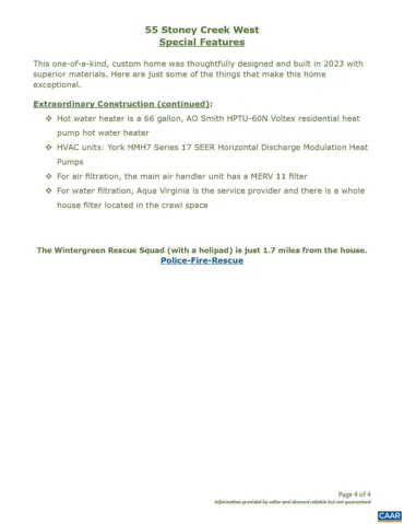 This stylish, modern farmhouse was built in 2023 to accommodate people with allergies or chemical sensitivities. You’ll love the wide-plank wood floors as you walk through the home and notice the accessible design elements including wide hallways and doorways on the 1st floor. There is a STUDIO APARTMENT with its own entrance that could serve as an in-law suite, guest space or office. The primary suite is on the 1st floor, and upstairs there are 3 more bedrooms, another lovely bathroom with a double sink vanity and a walk-up attic for storage. The kitchen is the heart of the home and has a Samsung Bespoke refrigerator, large island with a vegetable sink, exquisite quartzite countertops, roll-out cabinet drawers and a walk-in pantry. The primary suite bath is your own private spa with numerous custom additions including a zero-threshold shower. Outback the low-maintenance deck is the perfect place to enjoy the view, and the yard has plenty of room for gardening. Every window in the home has a winter mountain view. The list of special features will give you an idea of the purposeful design and superior materials used in this build. Nestled in the active Stoney Creek neighborhood, the many community amenities are at your doorstep.,Quartz Counter,Fireplace in Living Room