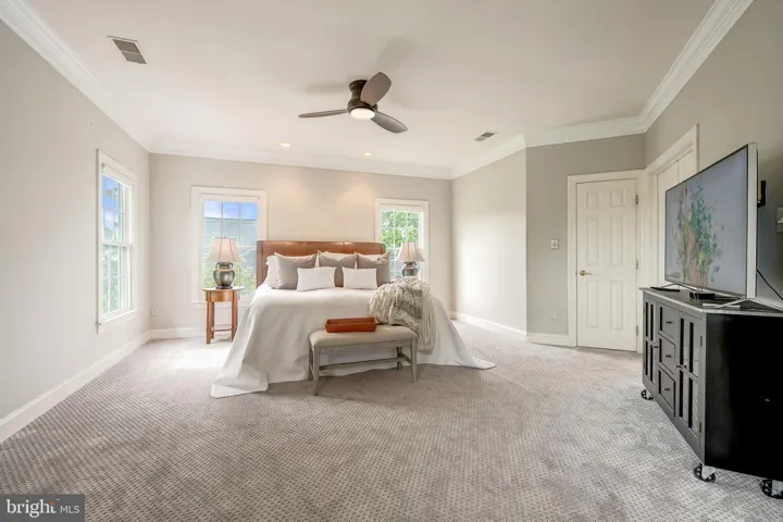 This stunning waterfront custom colonial by Creekstone Homes of Great Falls combines modern conveniences with timeless elegance, making it an ideal place to call home. With 5 bedrooms, 4.5 bathrooms and over 5000 square feet of luxury living space, it is situated on one of the largest lakes in Ashburn Village, the ultimate family friendly neighborhood. It backs to expansive common area for an incredible view. As you step inside the spacious two-level foyer, you are greeted by formal living and dining rooms with three piece crown molding and wainscoting. Enjoy a peek around the dual staircase into the bright vaulted family room with arched Palladian window. The family room includes a full wall of built-in shelves surrounding a towering stone, remote controlled fireplace with a main level office just around the corner. In the heart of the home, the kitchen features new bright quartz countertops, new sink, new Jenn Air gas cooktop, beautifully maintained solid maple cabinetry, and stainless-steel appliances. The laundry/mudroom/drop zone is conveniently located between the garage and kitchen with its own front entrance and lots of storage. The cozy breakfast nook, with white wood blinds overlooks the expansive composite deck with dual staircase to the backyard, which allows easy access to miles of walking paths around the lakes and community. Upstairs, in the oversized primary bedroom suite with sitting area, the custom wallpapered closet will knock your socks off, and that beautifully upgraded bathroom is a must see! Bedroom 2 has a private en-suite bathroom, while bedrooms 3 & 4 share a jack-n-jill buddy style bathroom. Escape to the spacious lower level, with private entrance and access to the back patio. You can enjoy a peaceful retreat with private bedroom, full bathroom, expansive recreation area with a full bar, including granite countertops, solid cherry cabinets, ceramic tile, tray lighted ceiling, mini fridge, all for relaxation or festive family entertainment. Behind it all is storage galore with built in shelving for all your goodies. This incredible space is great for multigenerational living. Just outside the basement door, you’ll find a modern lighted workshop/storage unit with electricity and sliding barn door under the deck for ultimate use of space. Landscape lighting, irrigation system, invisible fence all surrounded by lush and well-maintained landscape with upgraded drainage system that includes pop-ups for perfection. The upscale garage includes it all, electricity, ceiling fans, and multiple workspace areas. So many more details to include: new roof (2018), hardwood floors in foyer, living room, dining room and upstairs catwalk, updated water heater, furnace, heat pump, and upstairs AC unit, upgraded landscape lighting, established garden beds with smart irrigation system, new composite deck with electricity and lighting, upgraded garage (2021), security system with cellular connection and two zone HVAC systems!