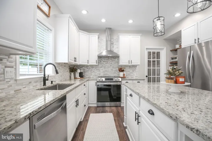 Step inside and discover a thoughtfully designed interior where every detail has been addressed. The kitchen is a showstopper with expansive cabinetry and open shelving, granite countertops, stainless steel appliances and vent hood, beautiful backsplash, updated lighting, and a generous island with decorative posts that doubles as a dining space. The connecting living room is warm and inviting with a gas fireplace, custom built-ins, and a wall of windows filling the space with natural light. Adjacent is a formal dining room, spacious and perfect for all your entertaining needs. An office with built-ins, French door entry, and generous natural light makes working from home both practical and enjoyable. The main level is completed with a beautifully renovated laundry room and stylish half bath.