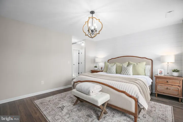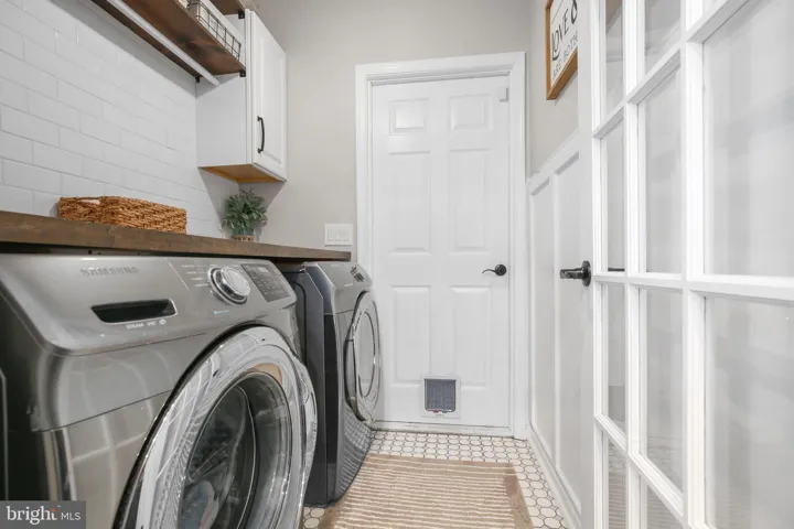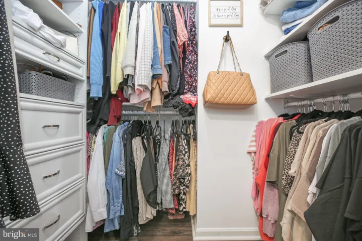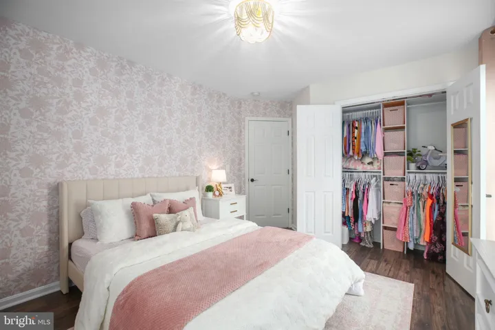 The primary suite boasts an accent wall, built-ins, plus 2 walk-in closets with organizers. A stunning en suite bath appointed with an expansive shower with custom tile, built-in shelving, double vanity with marble countertops, and laundry makes morning routines a pleasure! There are 3 additional bedrooms, all featuring custom closet systems for maximum organization and laminate plank flooring. A renovated hall bath completes the upper level and boasts tile flooring and tub surround, wainscotting, plus double vanities.