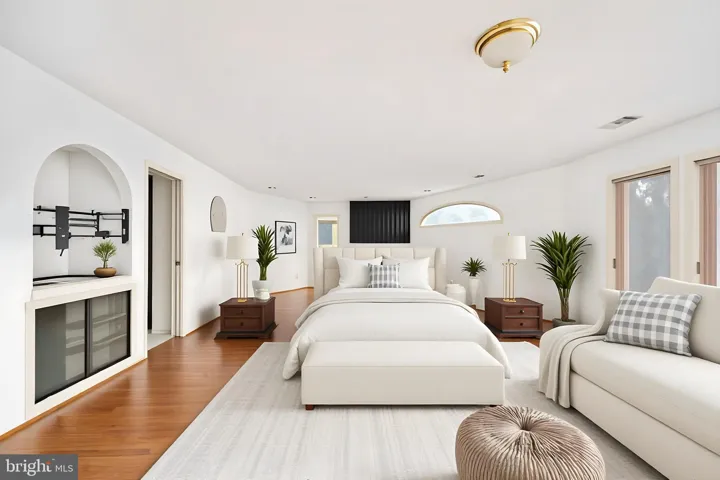 find the primary bedroom large enough for a sitting area with a luxurious ensuite bath with
