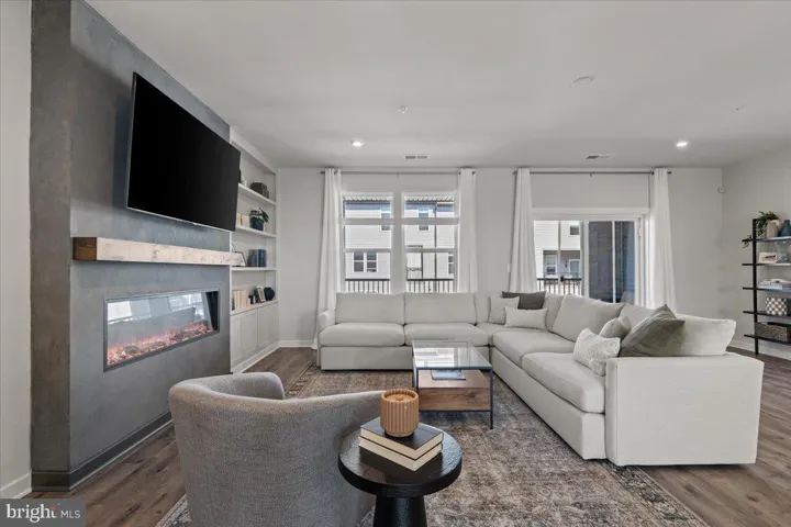The main level opens wide with LVP flooring that flows through an expansive layout. The kitchen is pure delight, with an expansive island that begs for pancake mornings, charcuterie spreads, or late night wine and laughter. Crisp white quartz counters sparkle under soft lighting, while high end GE Profile stainless steel appliances make every meal feel a little more gourmet. Just beyond, a big covered balcony promises lazy weekend lounging or cozy evenings with string lights and good company. A modern electric fireplace, perfectly framed by built-in shelving, becomes the centerpiece of the living area, inviting you to curl up with a good book or proudly display your treasures. Even the main level half bath feels generous and welcoming, ready to charm your guests.