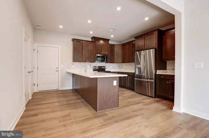 First level has gorgeous freshly installed LVP floors. Open living, cozy eating area, a humongous kitchen w/tile backsplash, quartz counters, & a long breakfast island, a pantry, coat closet, powder rm, & an acess to the garage off of the kitchen complete the first level | Second level is equipped with truly luxurious owner’s suite featuring a spacious bathrm w/double bowl vanity, walk-in-shower, & a private water closet. Two large walk-in closets for plenty of storage space. Two secondary bedrms that share a hall bath, a stacked washer & dryer, an acess to the balcony from one of the secondary bedrms, & the mechanical area complete the bedrm level