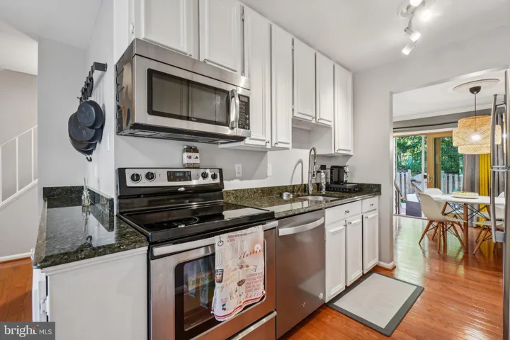 Welcome to 10205 Quiet Pond Terrace, a stunning 3-bedroom, 2.5-bath townhome perfectly situated in the quiet and convenient community of Burke Centre. Step inside to beautiful oak hardwood floors that span the entire main level. The inviting living room features custom built-ins with accent lighting and a cozy wood-burning fireplace that flows seamlessly into the dining area, an ideal space for entertaining. The kitchen has granite countertops, white cabinetry, and stainless-steel appliances, wrapping around to a charming breakfast nook framed by a bay window. Sliding glass doors from the living room open to a spacious wood deck with serene, tree views, your own private outdoor retreat. A stylish half bath completes the main level.