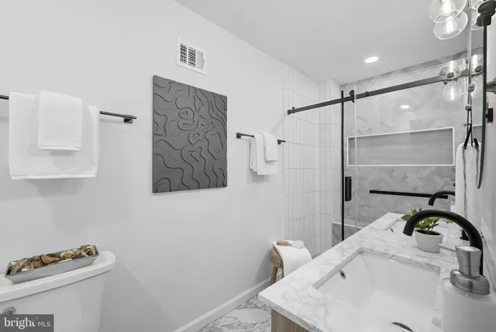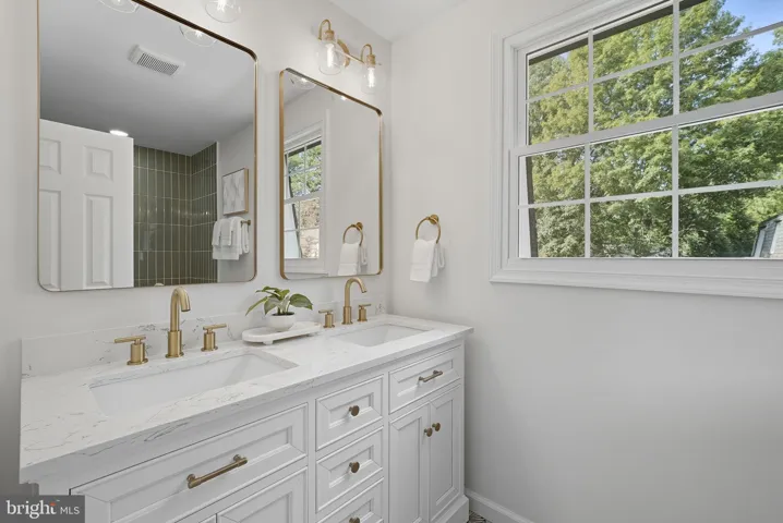 Freshly painted from top to bottom with newly refinished staircase to the upper level with 4 large bedrooms and a bonus space ideal for an office, teen hangout or playroom. New carpeting, all new door hardware, switch plate covers, vent covers and plumbing fixtures. Primary bedroom with huge walk-in closet with recessed lights. Primary bathroom newly renovated with custom tile work, walk-in shower with sitting bench and wall niche, custom shower door. A separate soaking tub & shower with gorgeous tilework, new vanity, lights and hardware fixtures. Three additional bedrooms are all generously sized with ample closet space and a secondary full bathroom, newly renovated with whimsical, designer tilework, new vanity, light fixtures, mirrors and all new hardware & accessories.