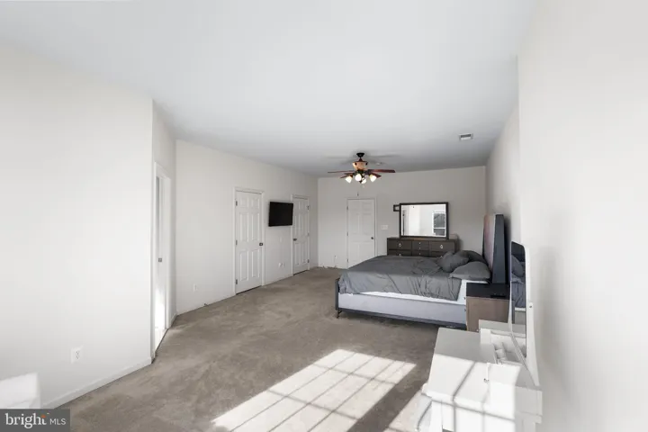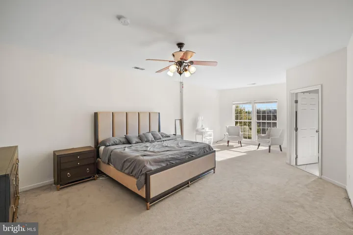 The upper level features three generously sized bedrooms, all fully carpeted. The spacious primary suite includes two walk-in closets and a luxurious en-suite bathroom with a soaking tub, stall shower, and double vanities. The additional bedrooms each include ample closet space and share a well-appointed full bathroom.