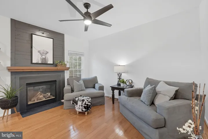 One-of-a-kind townhome in the heart of South Riding with unique customizations throughout and incredible outdoor spaces with privacy and scenic views. Over 2,250 finished square feet on 3 levels, 1 car garage with built in shelving, overhead storage and a private driveway. New HVAC system (2021), windows replaced (2019) and water heater (2018). Beautifully landscaped with mature Japanese maple and year-round blooms. Gorgeous, custom kitchen renovation (2023) with stunning & unique granite on an oversized center island with seating for 6, custom box trim on kitchen cabinetry, new hardware, sink & faucet, light fixtures and custom tile backsplash. Custom floor to ceiling fireplace with reclaimed barn beam and wood mantle create a cozy and rich space for entertaining, family gatherings or relaxing by the fire. Just off the kitchen the newly refinished deck (2025) is expansive and private with mature trees creating a backyard oasis amongst the branches. Mounted outdoor TV and multi-setting outdoor lights convey. Unique, rattan privacy screens convey. Beautiful hardwoods in the kitchen and family room. Main level powder room renovated (2019) with new flooring, toilet, floating vanity and fixtures. Brand new carpeting, new door hardware throughout and new ceiling fans. Primary suite with vaulted ceiling, custom antique barn doors and walk-in closet with built ins. Custom wall sconces and bedside shelving conveys. Primary bathroom updated 2025 with designer tilework, shiplap, new faucets, fixtures and seamless glass shower doors. 2 additional bedrooms and a secondary updated full bathroom with LVP flooring, updated vanity, hardware and lighting. Laundry conveniently located on Upper level with oversized front-loading washer/dryer.