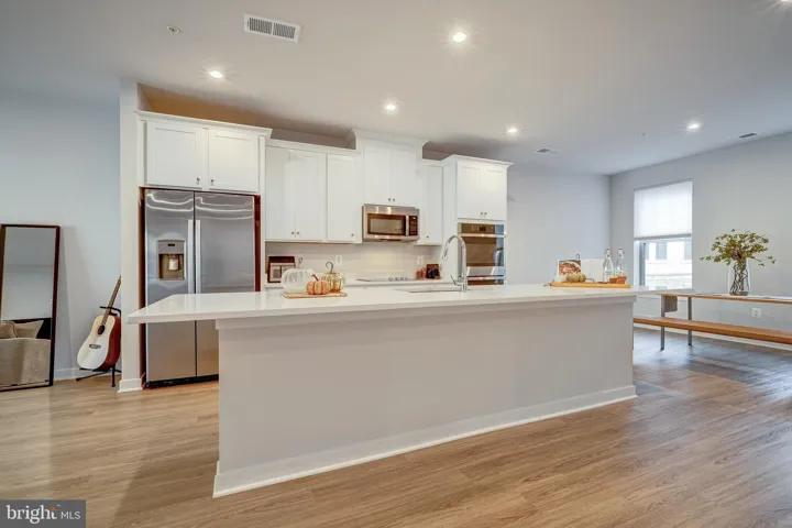 Located just steps away from the VRE , offering a fast track to Washington, D.C., 3 bedroom, 2.5 bathroom home offers the ideal blend of modern design and prime lot. Facing of treed view, no other house in front of the condo, no facing of VRE view, One of a largest model finished over 2450sqft approximately. Only 1 year young home is move in ready. Main level: open floor has family room, kitchen, dining, powder room, pantry, LVP floor throughout main level, Recessed lights, Morning sun on balcony, Kitchen dining combo, 12 foot island complete with sleek quartz countertops for the entertainment, 42″ cabinets, double wall oven, SS appliances, bali brand custom blinds (double cell for insulation).