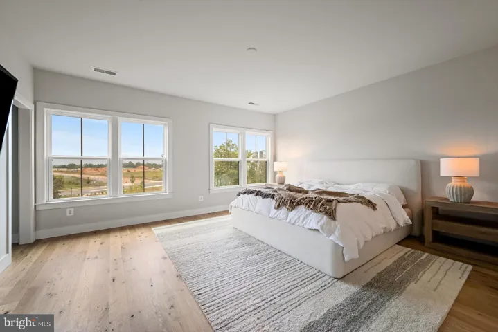 Open Sunday Oct. 12, 1:00-3:00. Luxury Westmoore lot premium townhome backing to park and green space! Numerous upgrades since closing including wide-plank Rustic Oak hardwoods on two levels, new primary bath, iron stair railings. Open concept with tall light-filled windows throughout. Primary bedroom with custom closet built-ins, new high-end primary bath with marble, Kallista Brushed French Gold fixtures, sinks, custom on-trend oak cabinetry, designer Robern mirrors, seamless glass shower, custom trim work, pocket door into water closet. Modern white gourmet kitchen with decorator pendants, 5 burner gas cooktop, quartz countertops. Adorable secondary bedrooms with hardwoods, decorator walls and lighting. Balcony off the main-level overlooking green space. Finished lower level with full bath, recreation room. Just 10 minutes to Dulles. Lovely community with pool, park space, walking trails, dog park, pool, walk to the Metro.