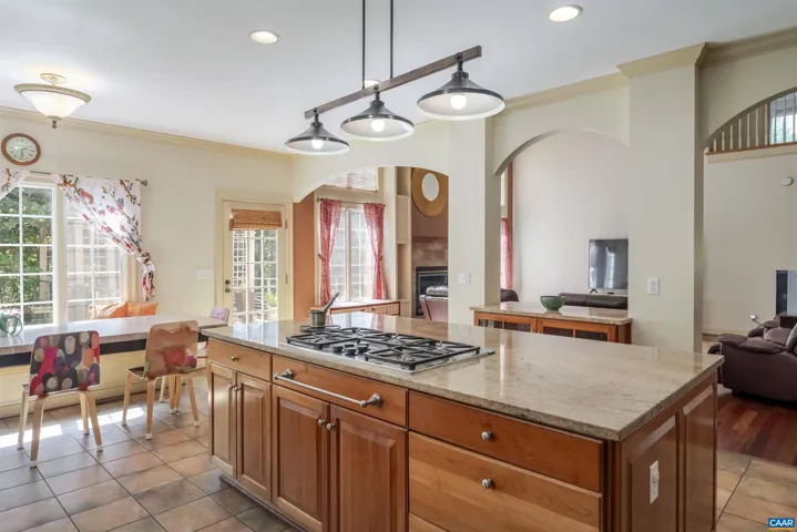 A spacious residence…Stunning inside and out…Dramatic great room, opens to the kitchen & breakfast room, which leads to large deck, overlooking beautiful lower terrace…extensive, extended living space…Bright living and dining rooms…First floor primary suite, features huge walk-in closet, separate vanities & a private side deck…A second bedroom w/a private bath, the laundry room, and powder room round out the first floor…Walking up the open staircase to the second floor, you find a open family room that overlooks the great room and leads to the 3 bedrooms on the second level… The terrace level includes a kitchenette, family room w/fireplace, full bath, a great exercise/ballet room…Gas line is attached to the fire pit & gas grill…Large 3 car garage…Top quality & attention to detail throughout! A fantastic neighborhood with pool, tennis courts, walking paths and a lovely pond and fountain…Idyllic is the right word for the lifestyle in Walnut Hills… This extensively landscaped 1.5 acres is set in a lovely neighborhood…Surprisingly close to Harris Teeter, Starbucks, Target and more…only 6 miles to Albemarle High School and town..,Granite Counter,Fireplace in Family Room,Fireplace in Great Room